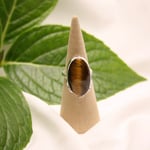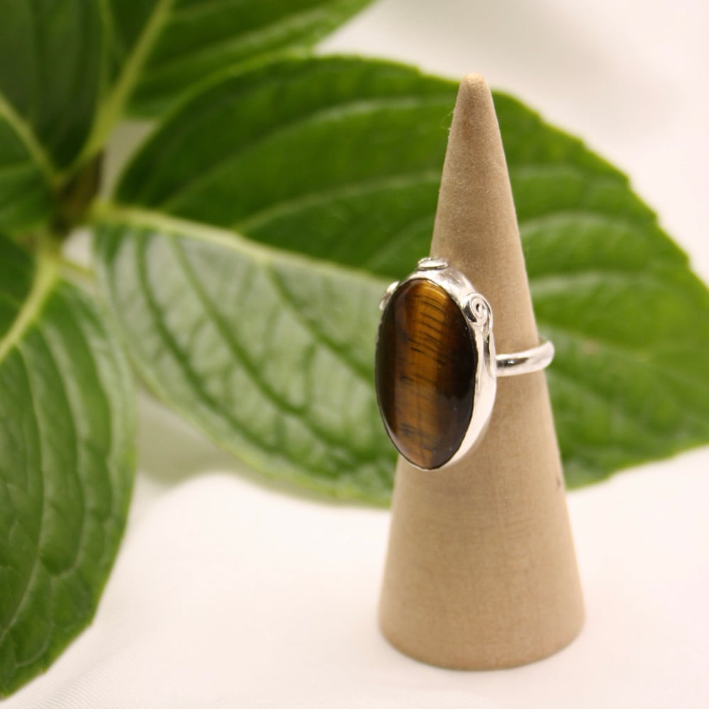 The Spiral Goddess ring is ideal for those seeking to feel more empowered and grounded. This design is part of the woodland muse collection. Inspired by autumn and the transformations it brings, I aimed to create a collection that not only captures the essence of the season but also assists with the changes it entails. Incorporating a gemstone that offers protection, the triple spiral symbol on the bezel represents the Spiral Goddess, a figure embodying female life cycles and growth.